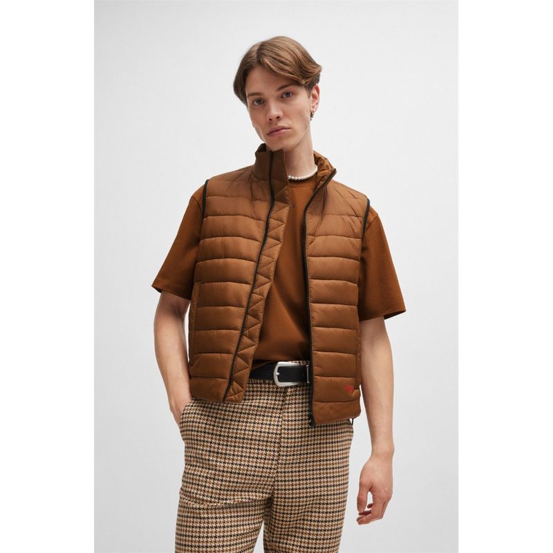 Chaleco slim de HUGO confeccionado en un material repelente al agua. Esta prenda ligera tiene el detalle de la marca en el dobladillo. Este producto está elaborado con poliamida reciclada procedente de residuos textiles pre y pos consumo o de redes de pesca industriales.