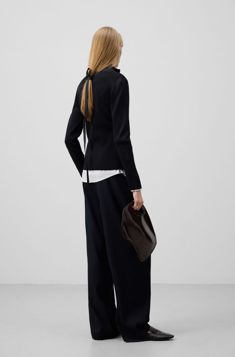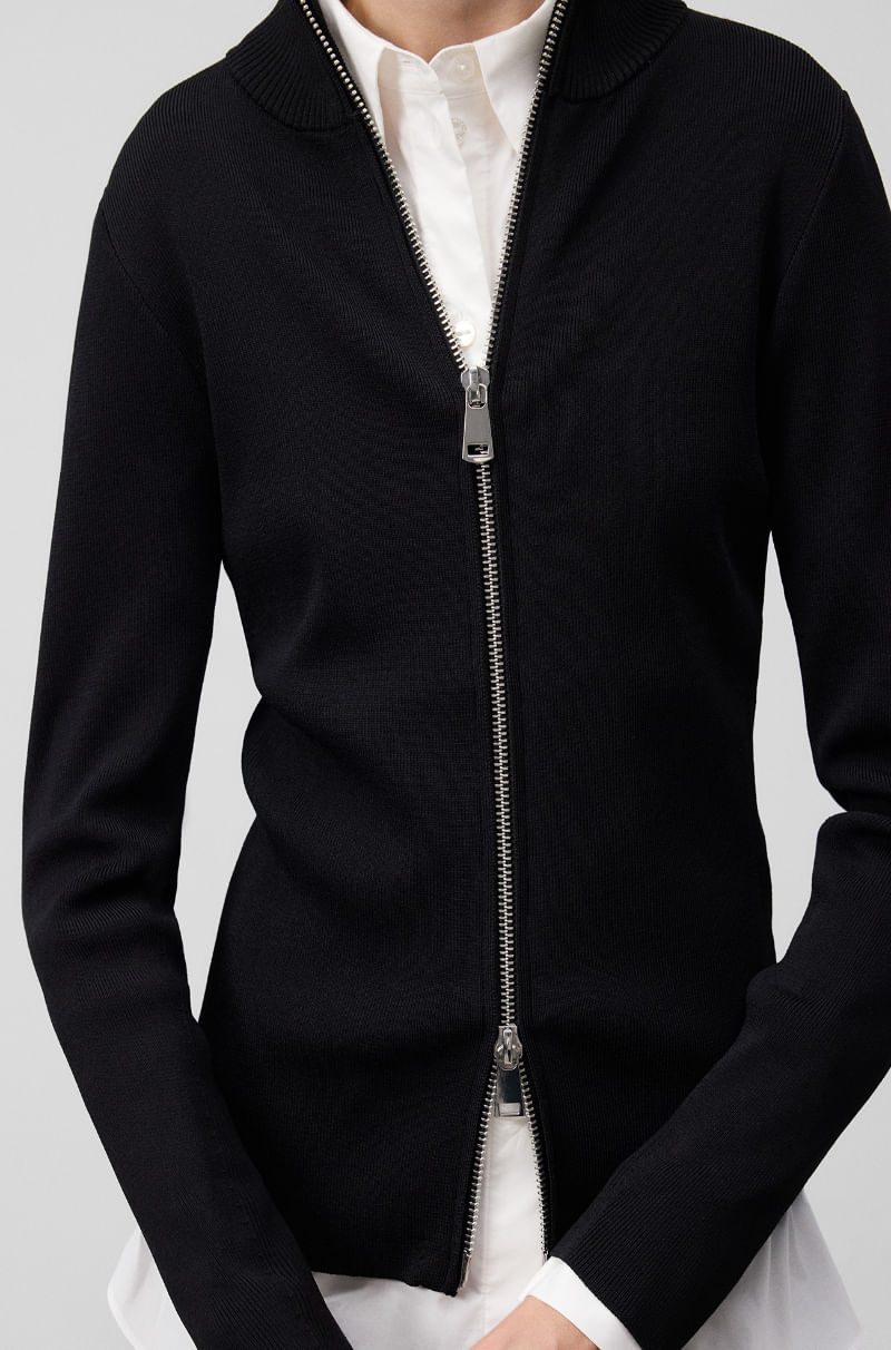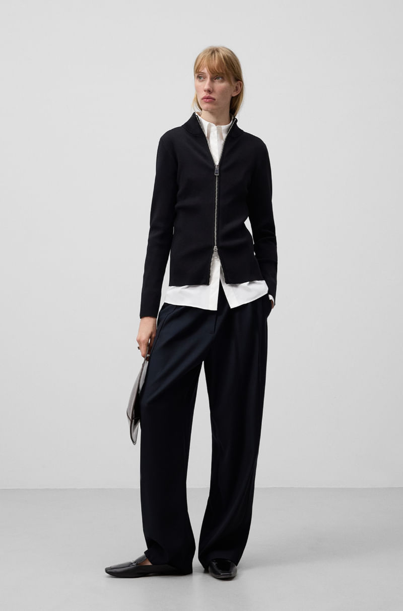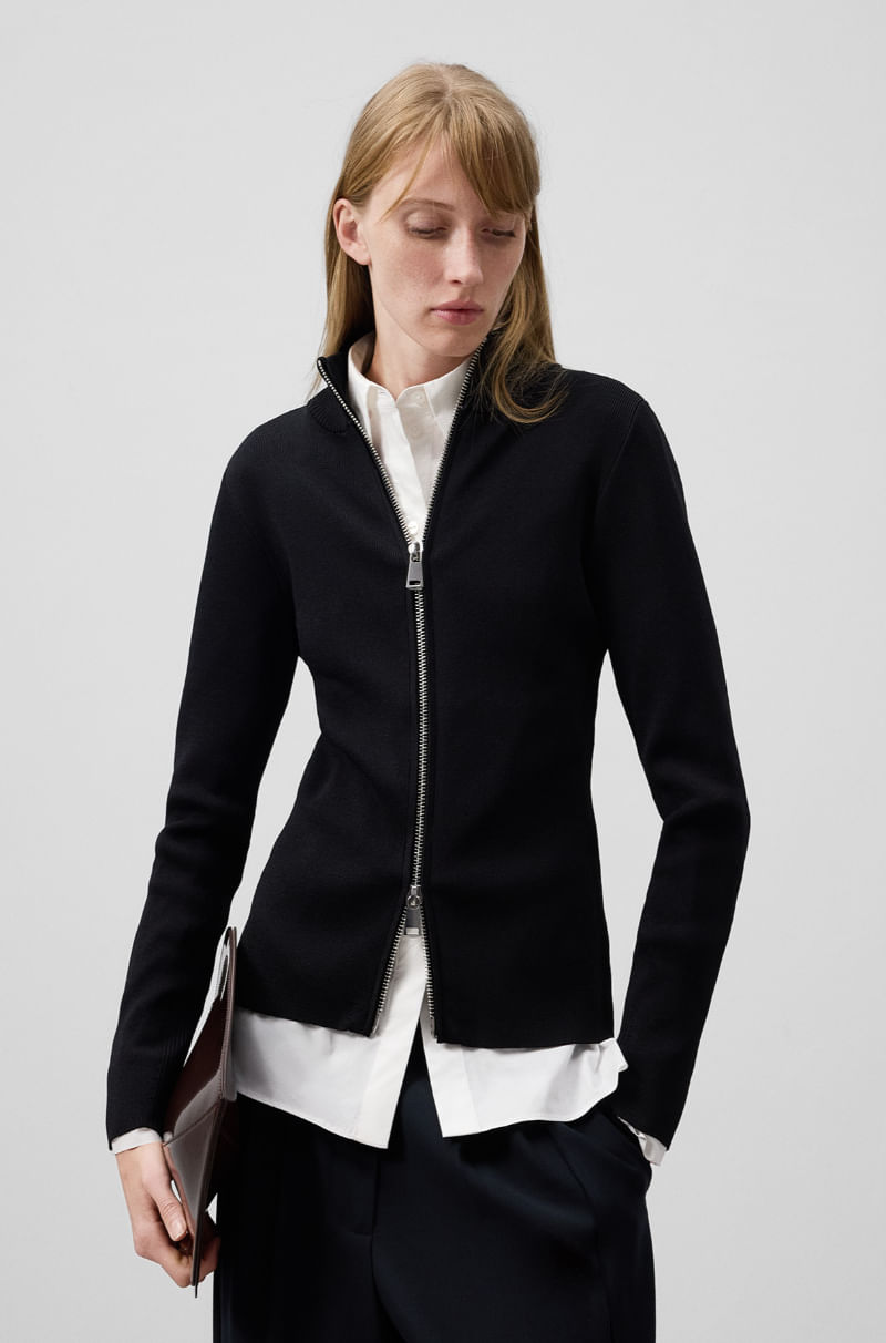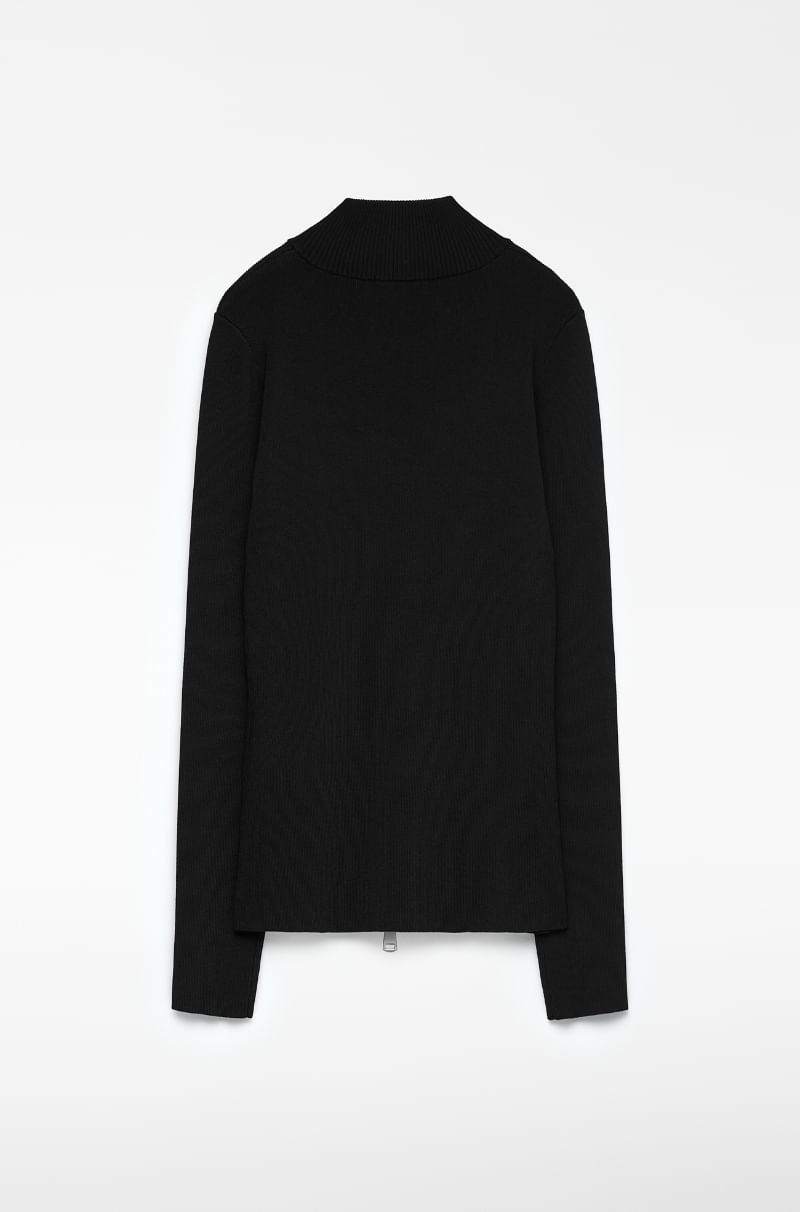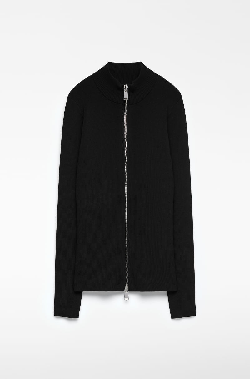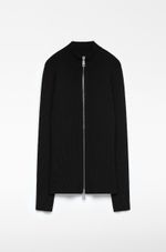 Chaqueta canalé mujer. Cuello alto. Manga larga. Cierre cremallera de doble cursor.