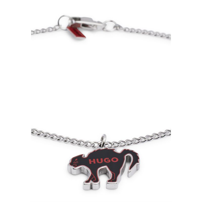 Un collar llamativo de HUGO. Este accesorio, elaborado en acero inoxidable, incluye un colgante de la marca con una forma de temporada.