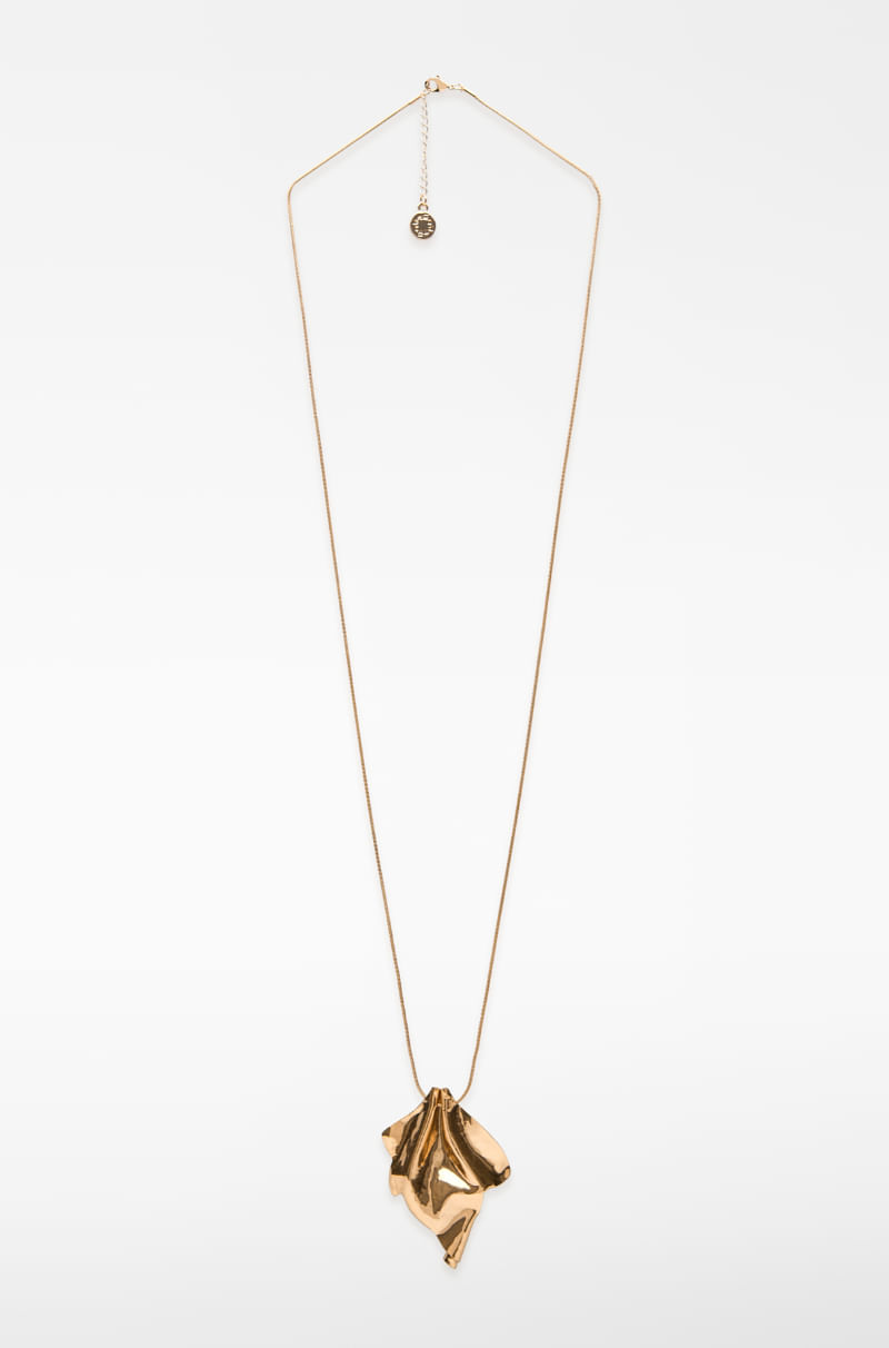 Collar pieza metálica relieve mujer. Cadena metálica. Terminales logotipados.