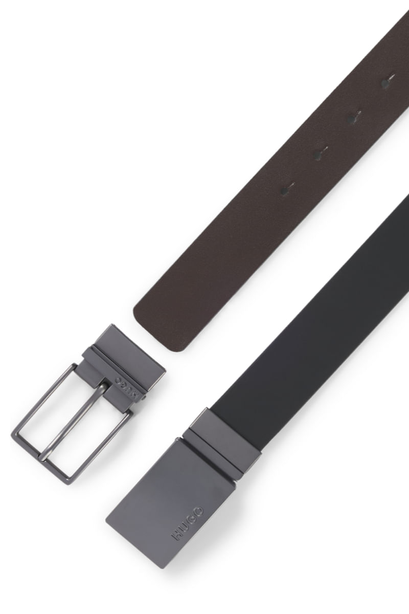 Esta correa reversible de 3,5 cm de ancho con dos hebillas y opciones de color es un accesorio versátil. Elaborado en lujosa piel italiana.