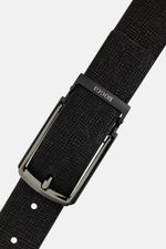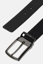 Correa de viaje reversible. Un lado está fabricado en cuero curtido vegetal, mientras que el otro es de cuero suave, liso y en contraste. La hebilla negra y gris plomo brillante es totalmente desmontable y cuenta con una trabilla con el logotipo de Boggi.