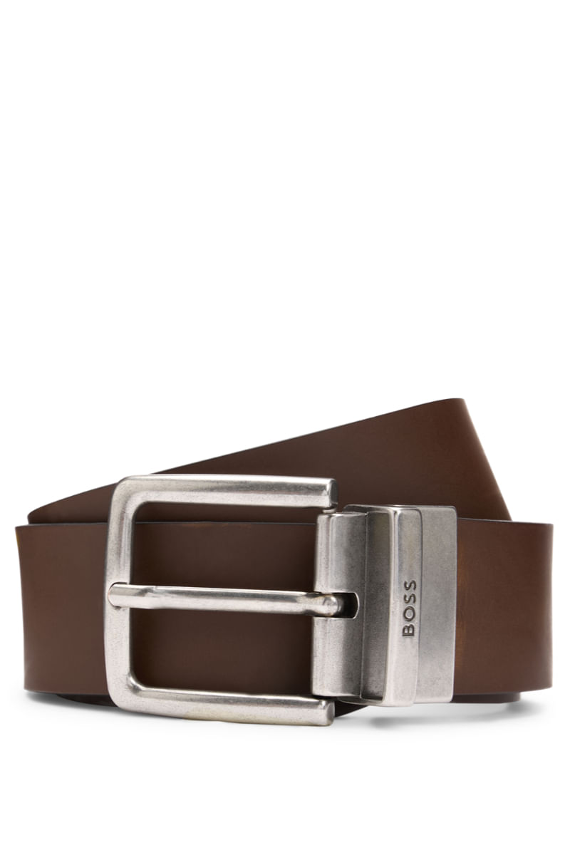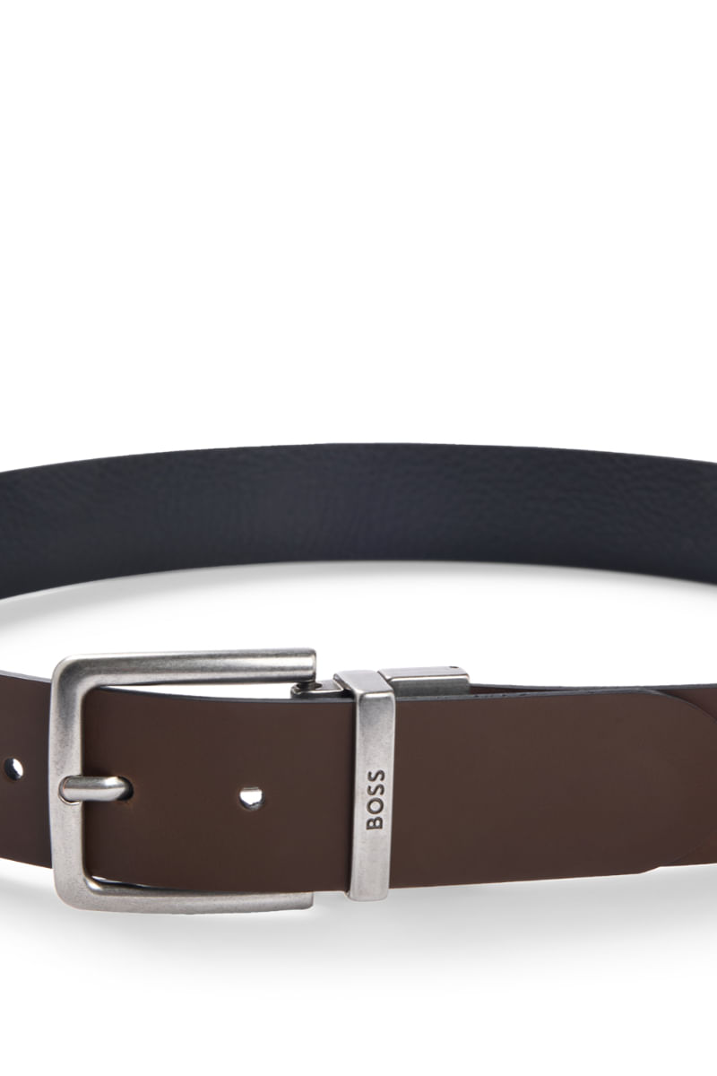 Correa reversible de piel con acabados liso y granulado