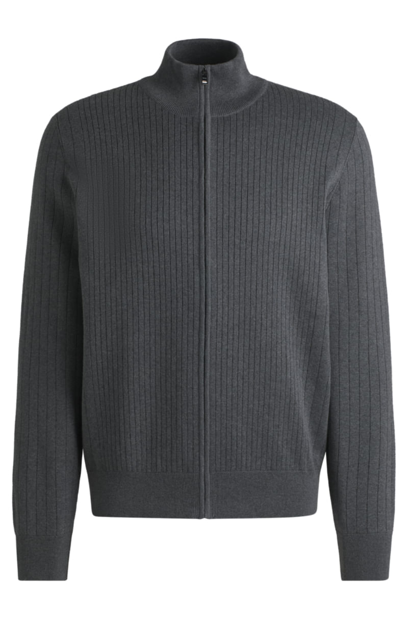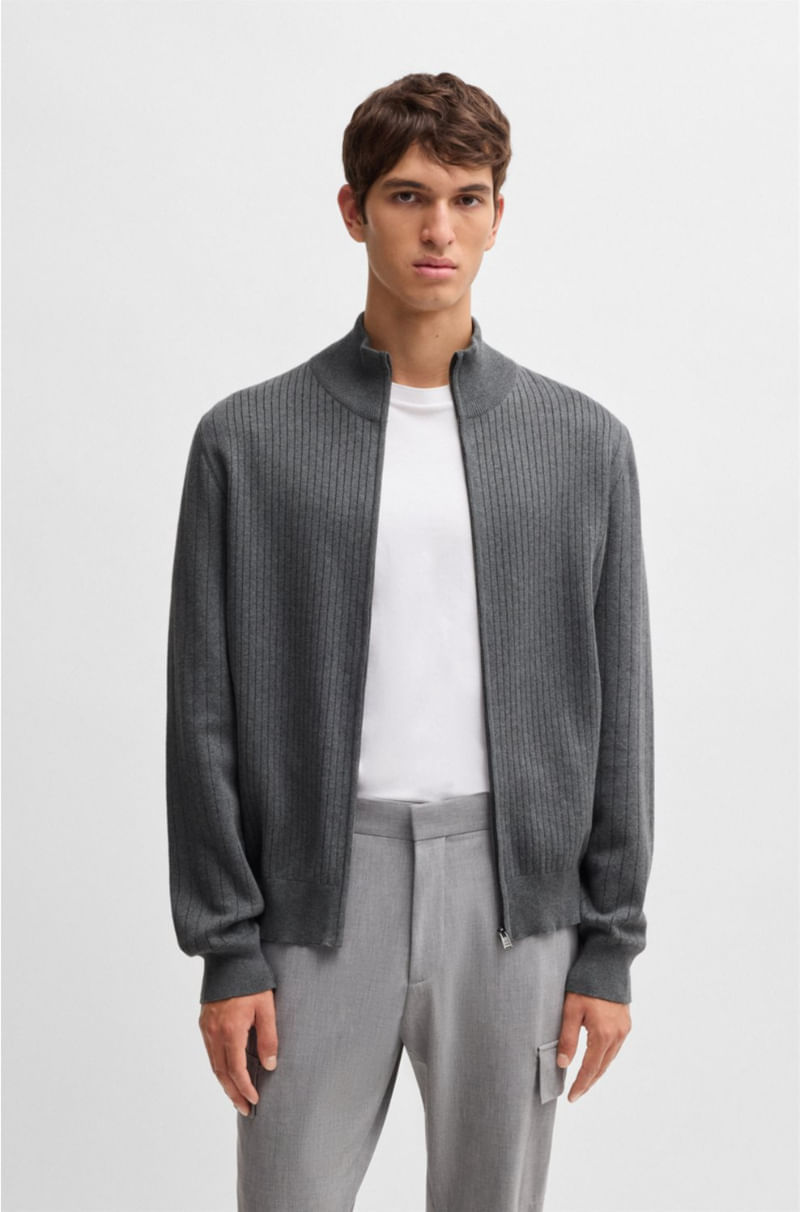 Cárdigan de algodón con cremallera y rayas finas de punto.