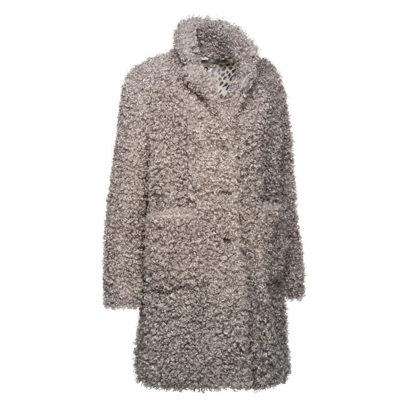 Diamond es un abrigo para mujer de estilo sofisticado y moderno, con solapas, aberturas laterales y relleno de guata reciclada EcologicWARM. Este modelo, realizado con pelo ecológico con efecto rizado, es una prenda de tendencia ideal para combinar con los looks más o menos formales. 100%PL