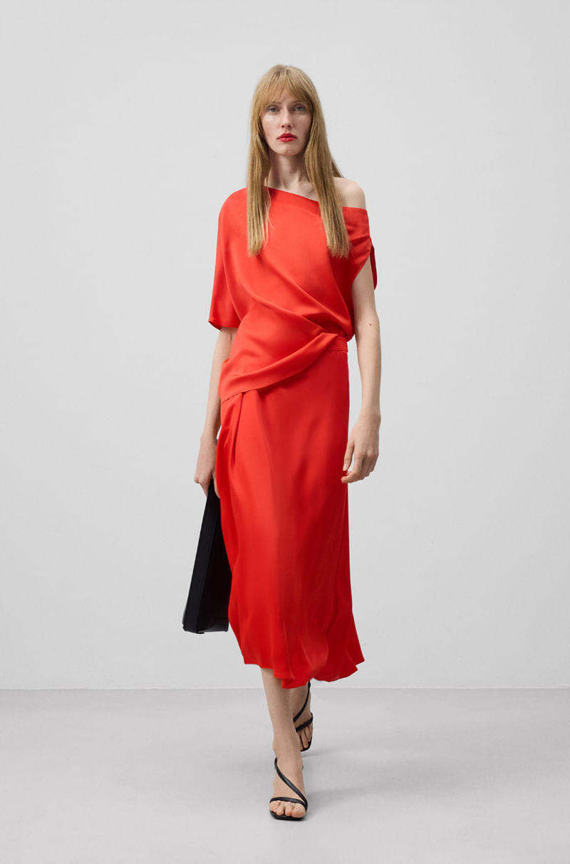 Falda midi asimétrica mujer