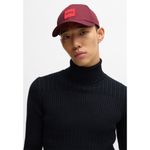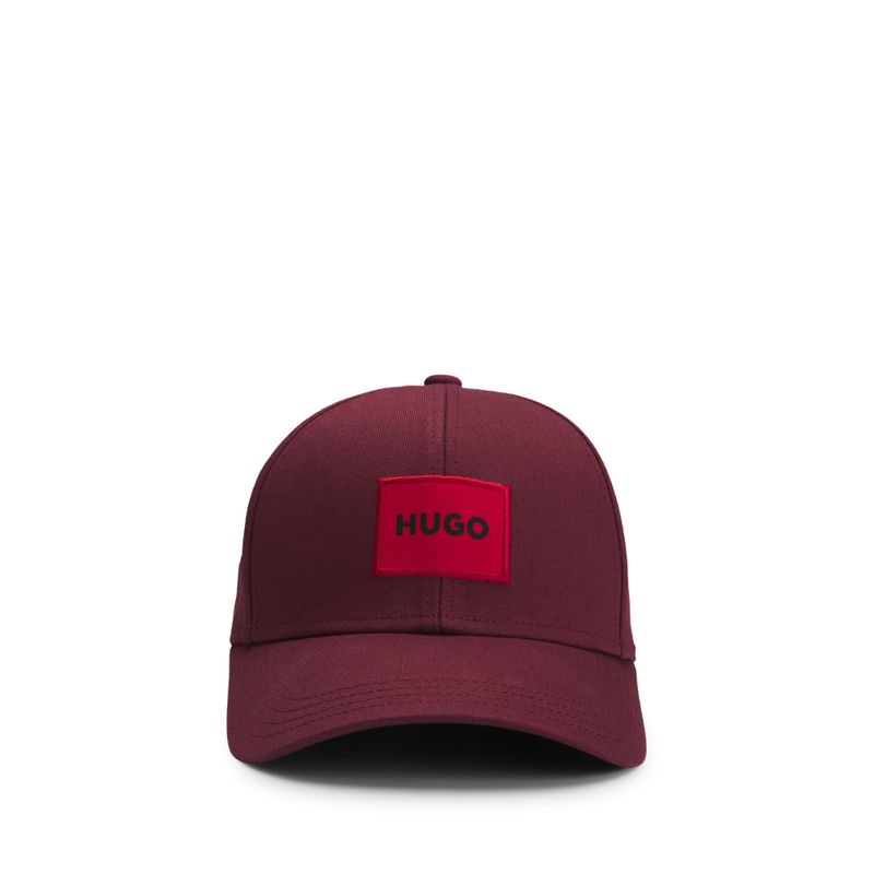 Una gorra distintiva con una gran etiqueta con el logotipo en rojo. Este accesorio versátil, con una correa de velcro, está diseñado en sarga de algodón transpirable.