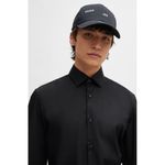 Una camisa slim fit confeccionada en popelín de algodón con un acabado de planchado fácil y con detalles de tejido en contraste en el interior.