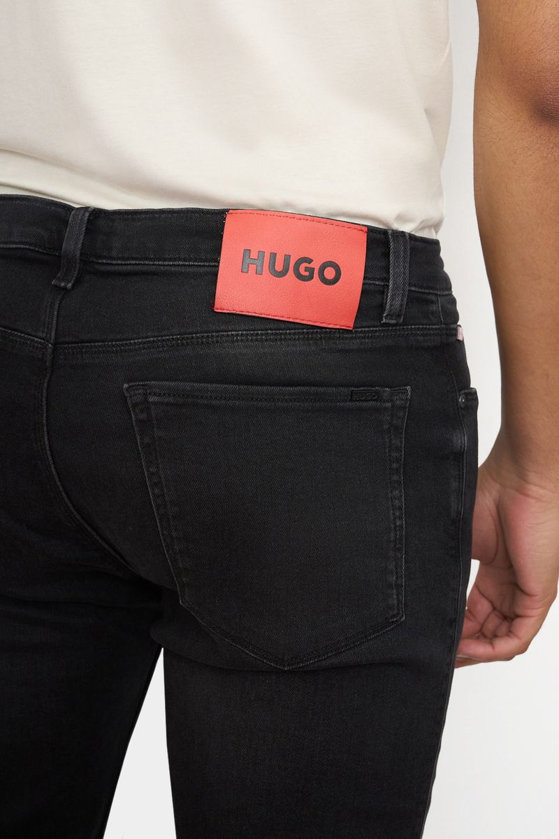Pantalón jean regular fit en algodón con material elástico en corte slim fit.
