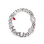 Brazalete de cadena con letras del logo insertadas.
