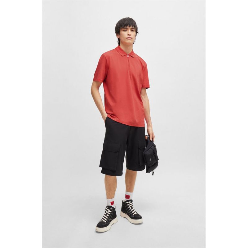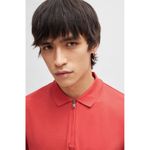 Un polo regular fit en mezcla de algodón elástico flameado con tapeta de cremallera y logo estampado.