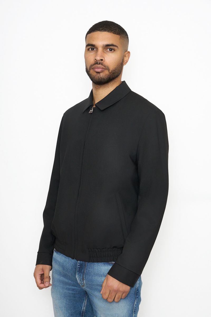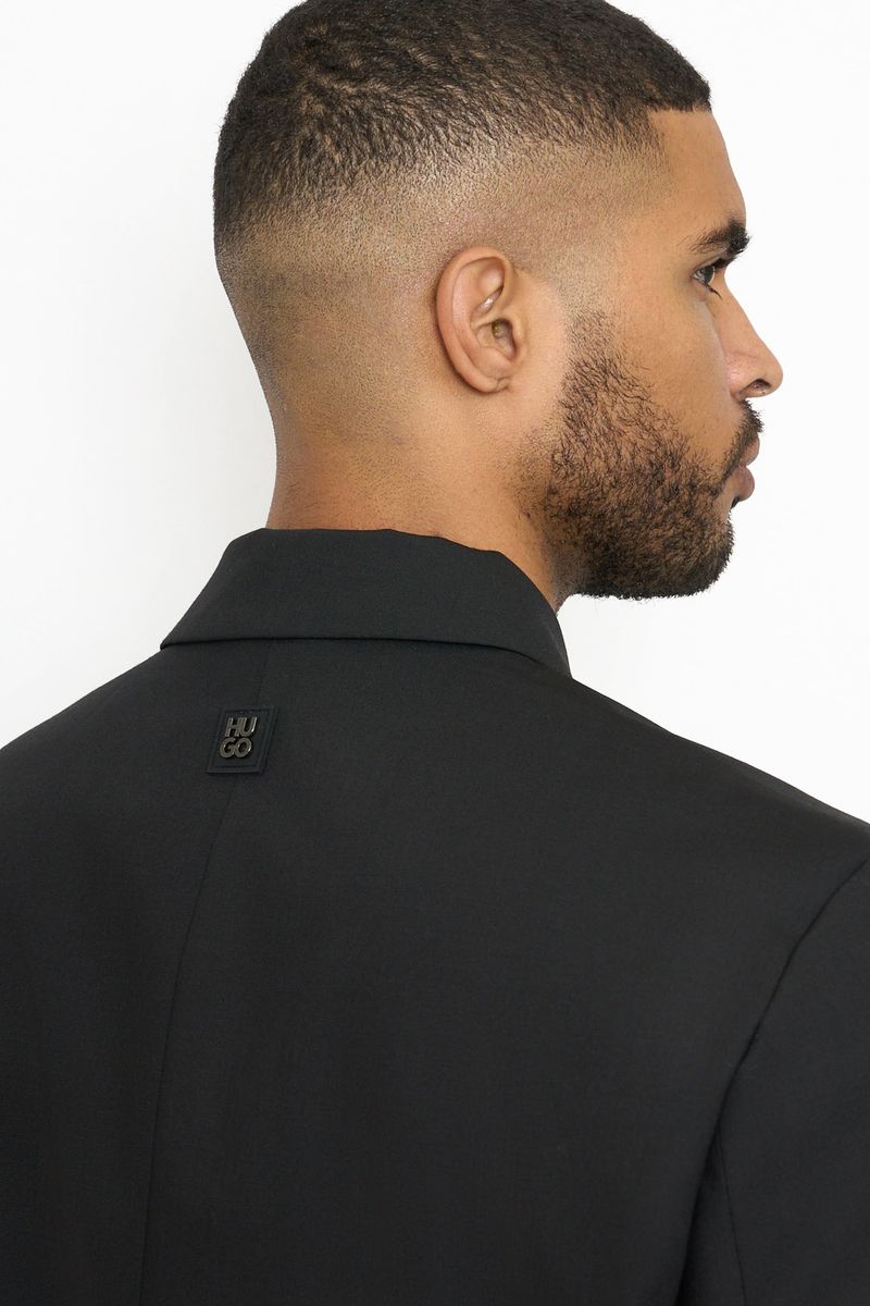 Un saco casual de corte slim fit confeccionado en material técnico y lana virgen.