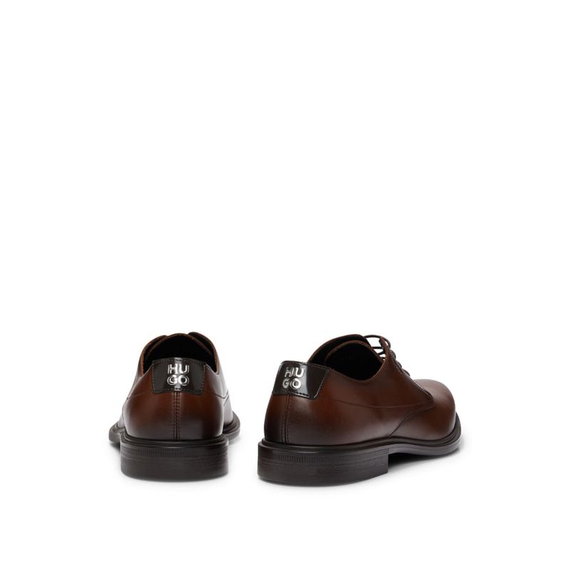 Zapatos modelo Derby con cordones, elaborados en Portugal en piel de napa y detalles de la marca.