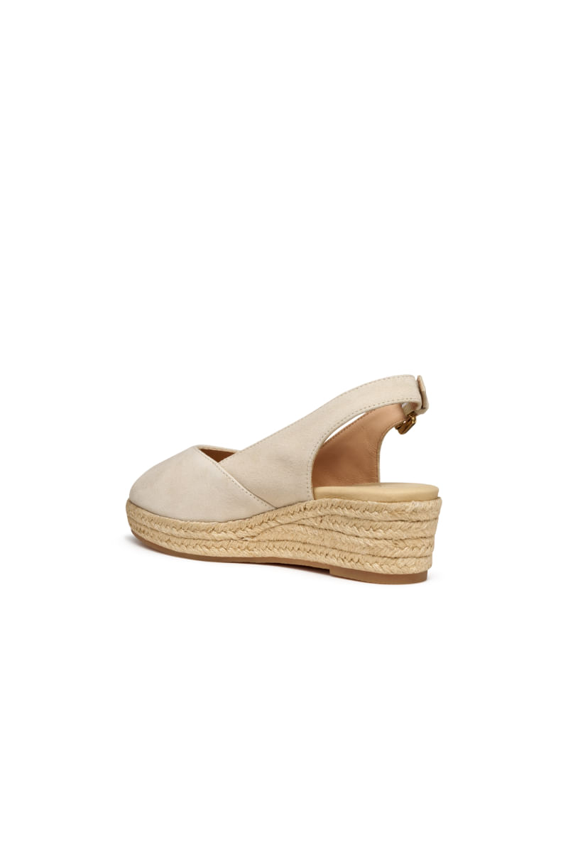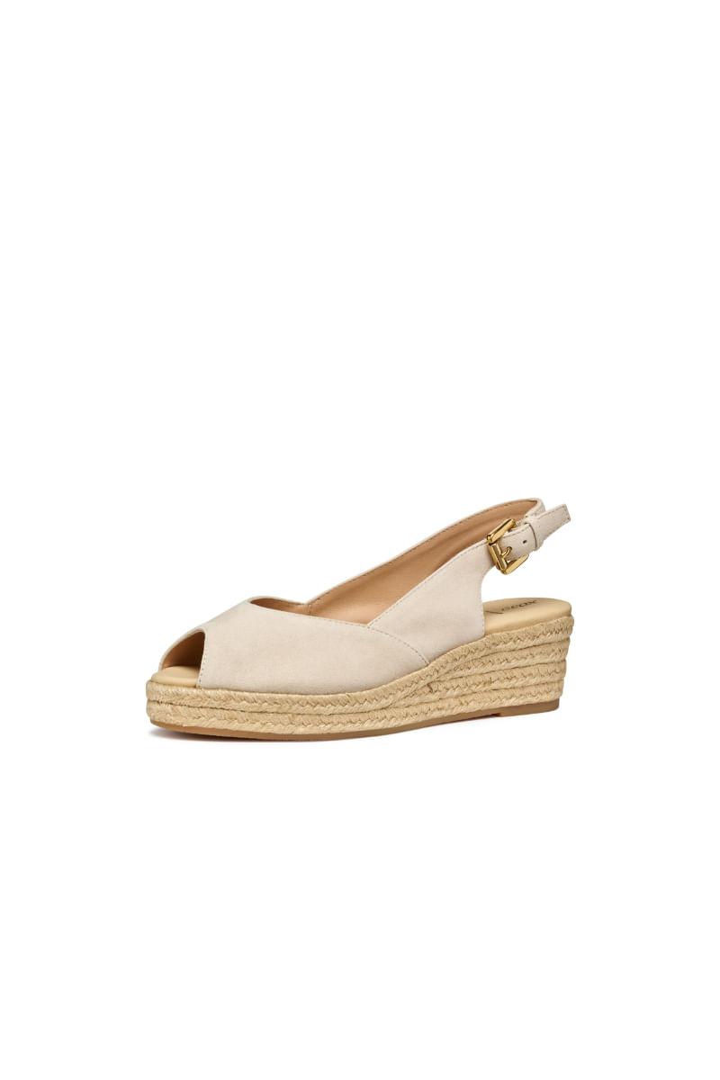 Iberide es una sandalia de mujer con cuña de cuerda estilo alpargata que ofrece confort y transpirabilidad. Realizado en suave gamuza, este modelo está pensado para añadir un toque refinado a los looks urbanos de verano.