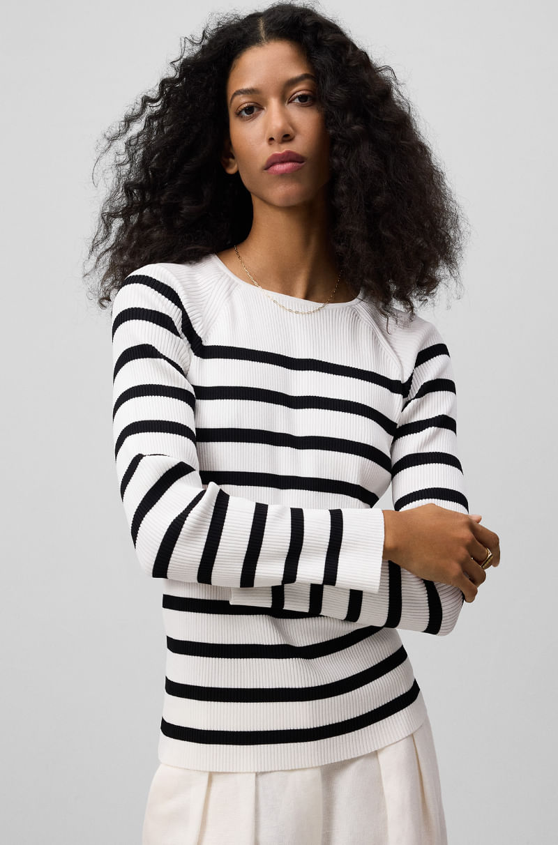 Jersey canalé rayas mujer. Cuello caja. Manga raglán.