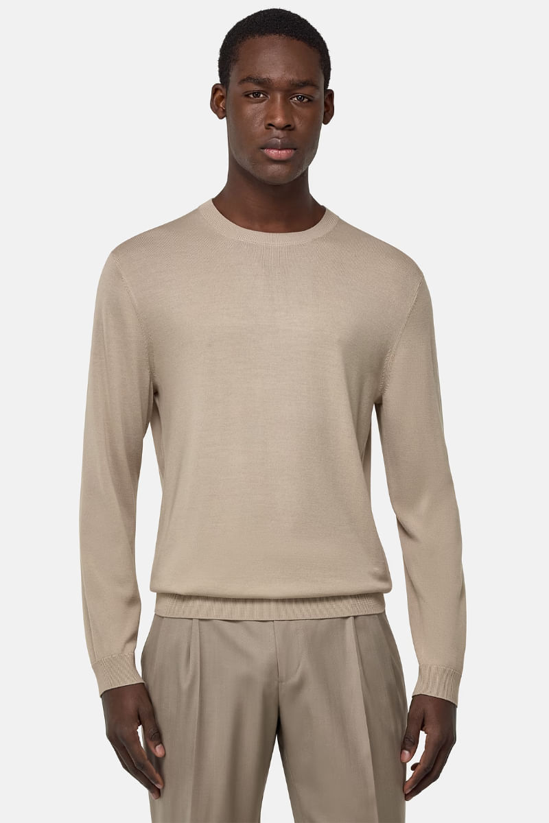 Jersey de cuello redondo. Lana merino pura superfina.