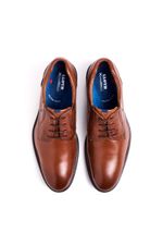Un elegante zapato con cordones fabricado en piel lisa, con parte superior de diseño casual y costuras elaboradas para un aspecto realmente original.
