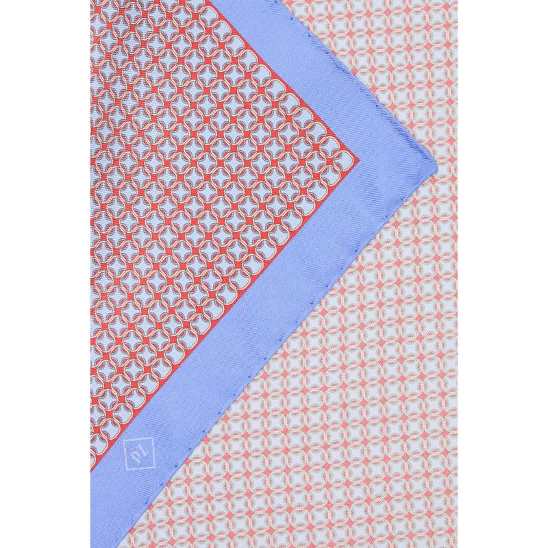 Cada blazer se ve aún más elegante con el bonito pañuelo de bolsillo de seda estampada con un motivo geométrico de cadenas y un monograma en el borde.