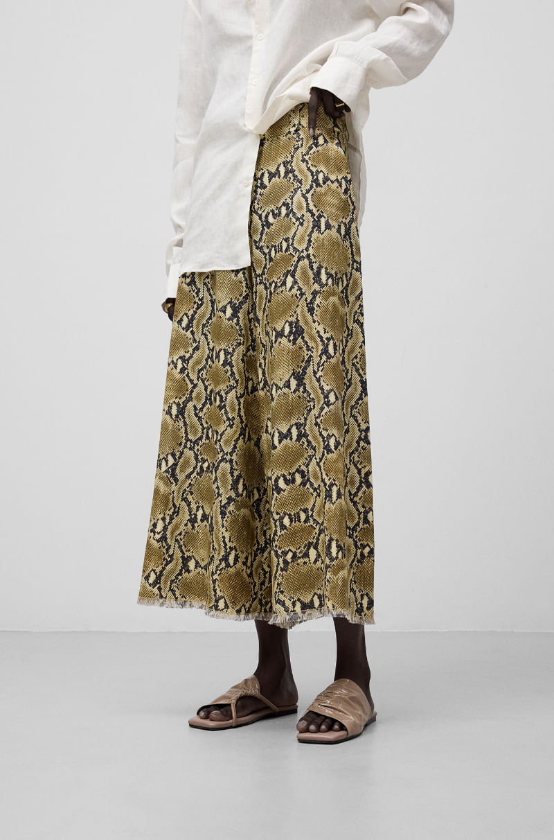 Pantalón cropped serpiente lino mujer