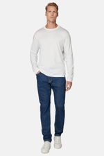 Pantalón jeans de mezclilla de algodón elástico con costuras en contraste.