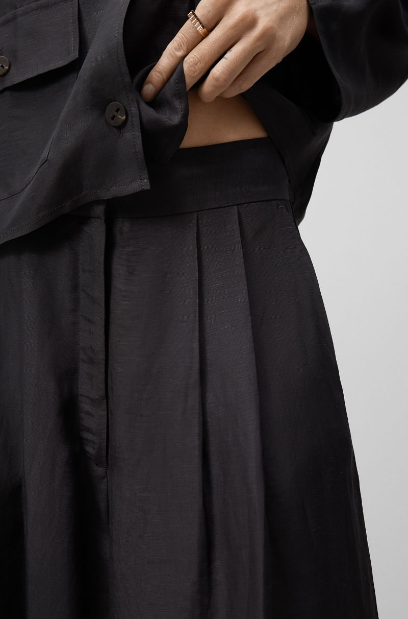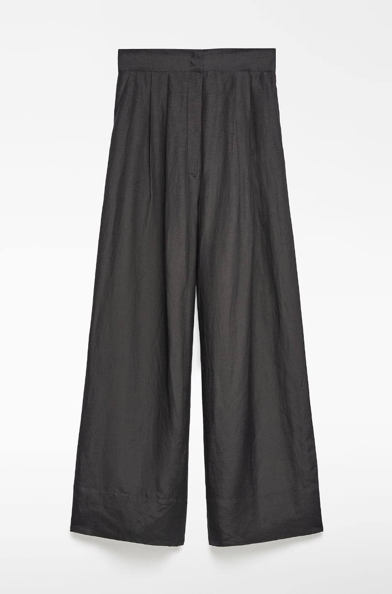 Pantalón pierna ancha con lino mujer