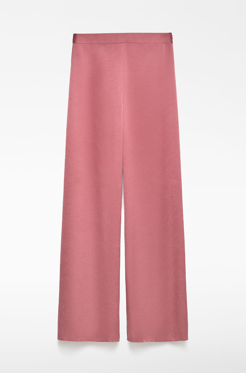 Pantalón pierna ancha mujer. Cierre cremallera lateral.