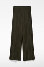 Pantalón plisado pierna ancha. Cinturilla elástica. Bajo recto.