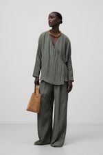 Pantalón pijamero poliéster reciclado mujer. Cinturilla elástica. Pinzas en delantero. Bolsillos laterales. Pierna recta.