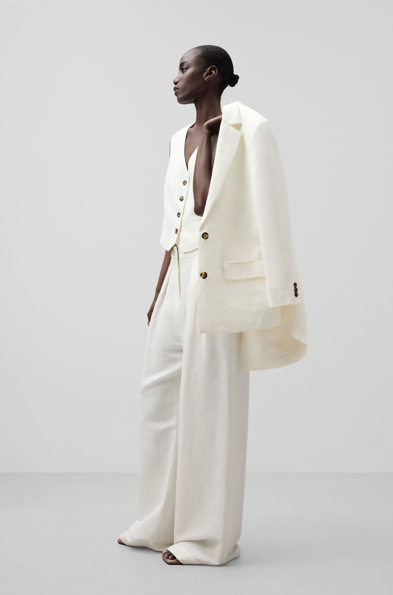 Pantalón sastre de pinzas con lino mujer