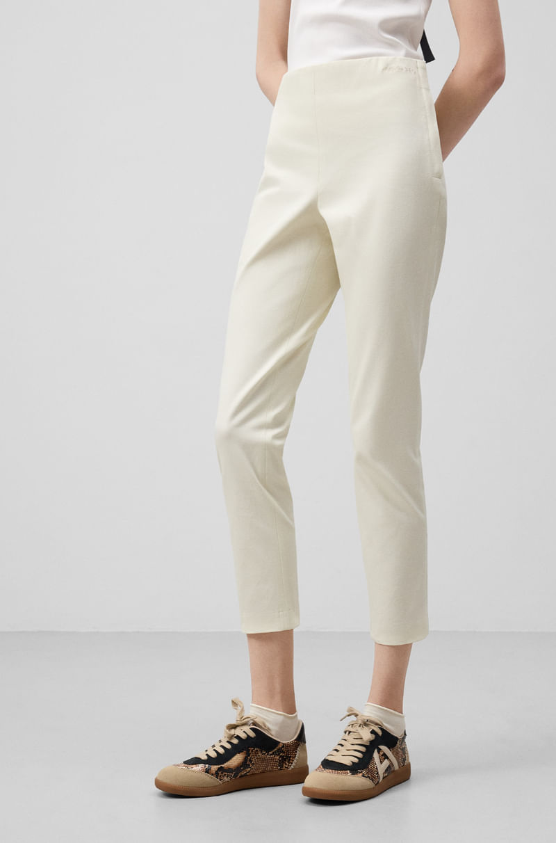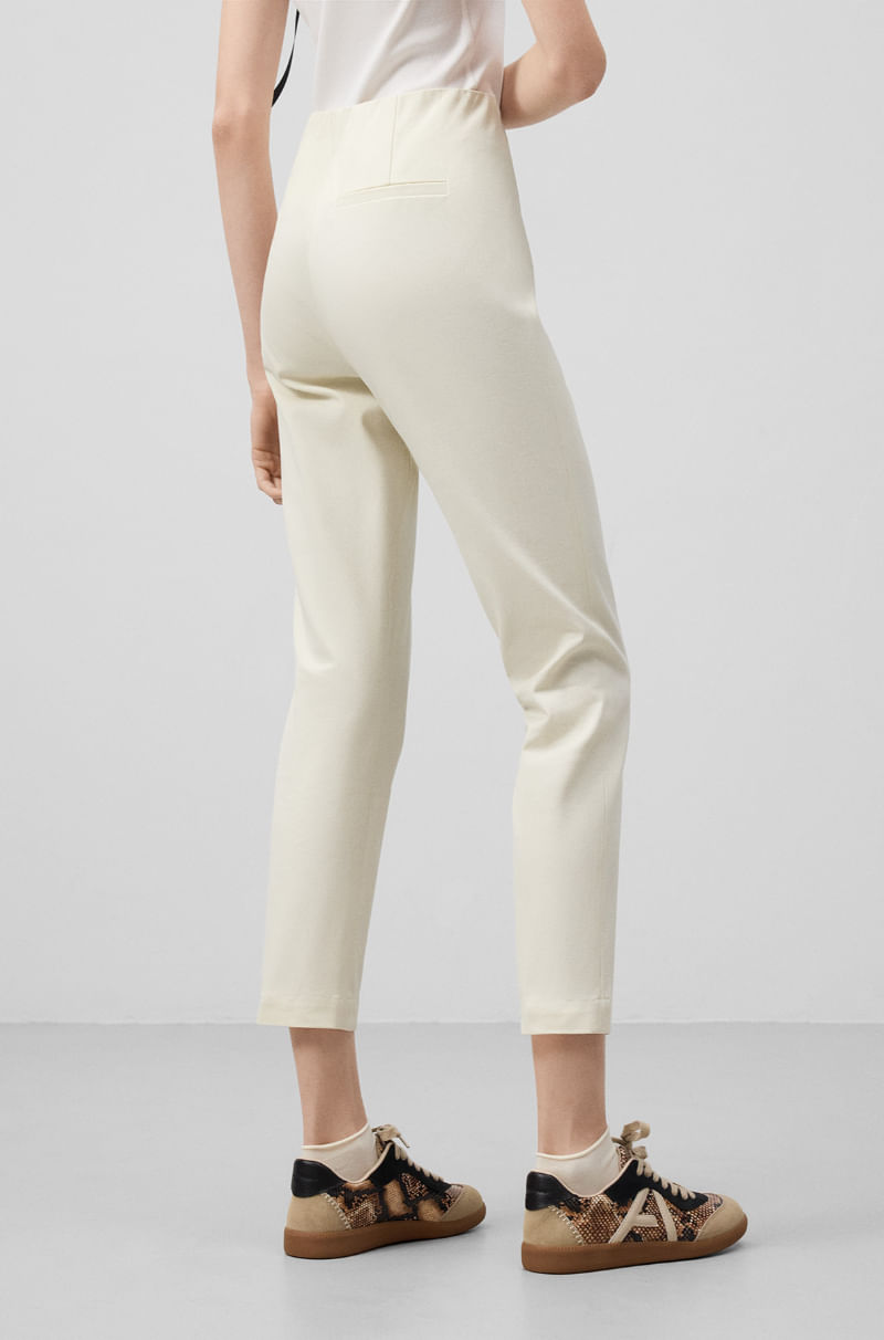 Pantalón tobillero entallado mujer. Cierre cremallera lateral. Bolsillo de vivo en espada.