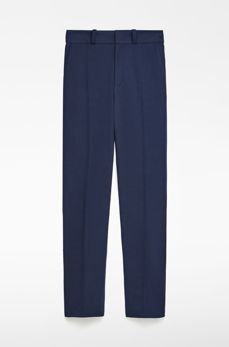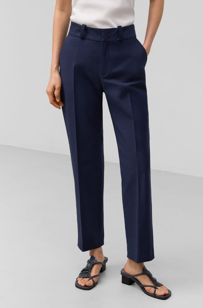 Pantalón tobillero slim fit mujer. Trabillas. Bolsillos laterales. Bolsillos de vivo en espalda. Raya de plancha en delantero y espalda.