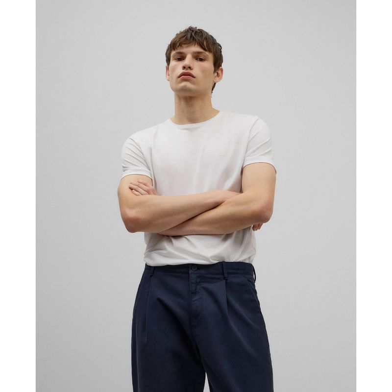 Pantalón chino sarga de algodón hombre. Pinzas en delantero. Trabillas. Cierre botón. Bolsillos italianos en lateral. Bolsillos de vivo en espalda. algodon 97% elastano 3%