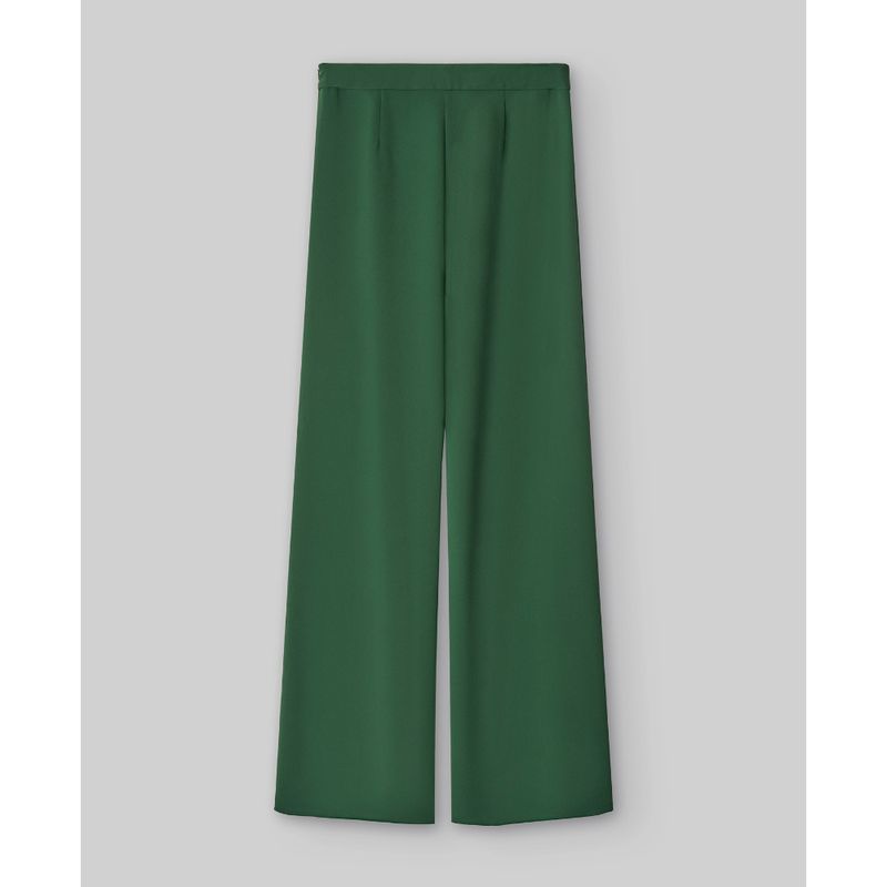 Pantalón pierna ancha verde mujer. Cinturilla. Cierre lateral con cremallera invisible. poliester 100%