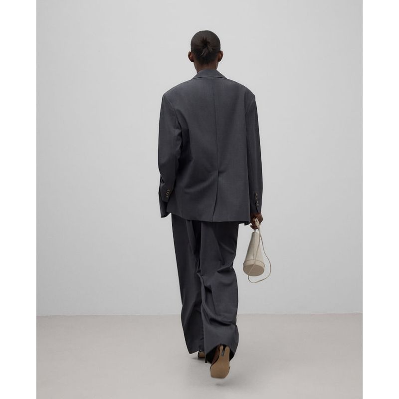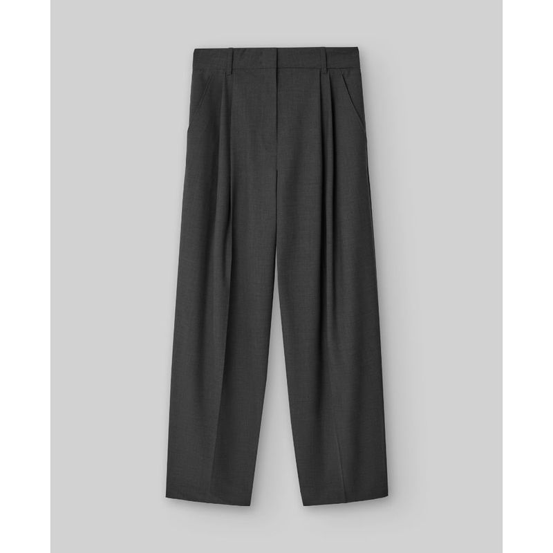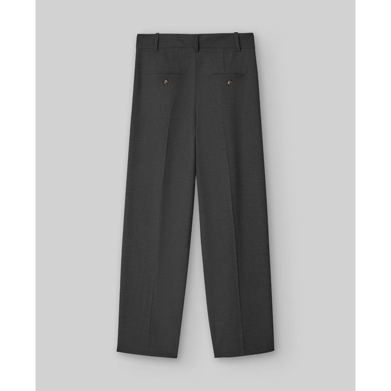 Pantalón sastre gris marengo mujer. Cintura alta. Trabillas. Pinzas en delantero. Bolsillos laterales. Bolsillos de vivo en espalda. Pierna ancha. poliester 52% lana merino 30% liocel 10% elastano 8%