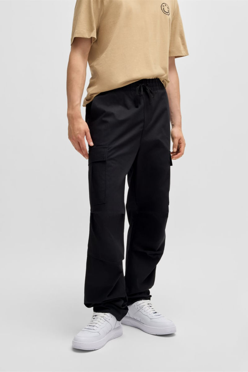 Pantalones relaxed fit de pierna recta con tiro medio de algodón estructurado, bolsillos cargo y detalle del logo.