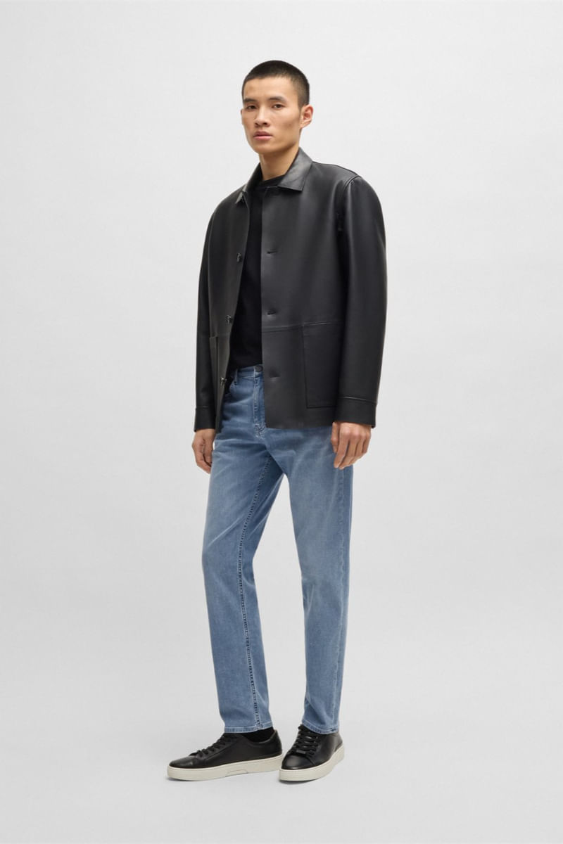 Estos pantalones jean en un azul versátil se han diseñado en tejido denim elástico transpirable y fresco para resultar más cómodos en verano. Regular fit con pierna cónica.