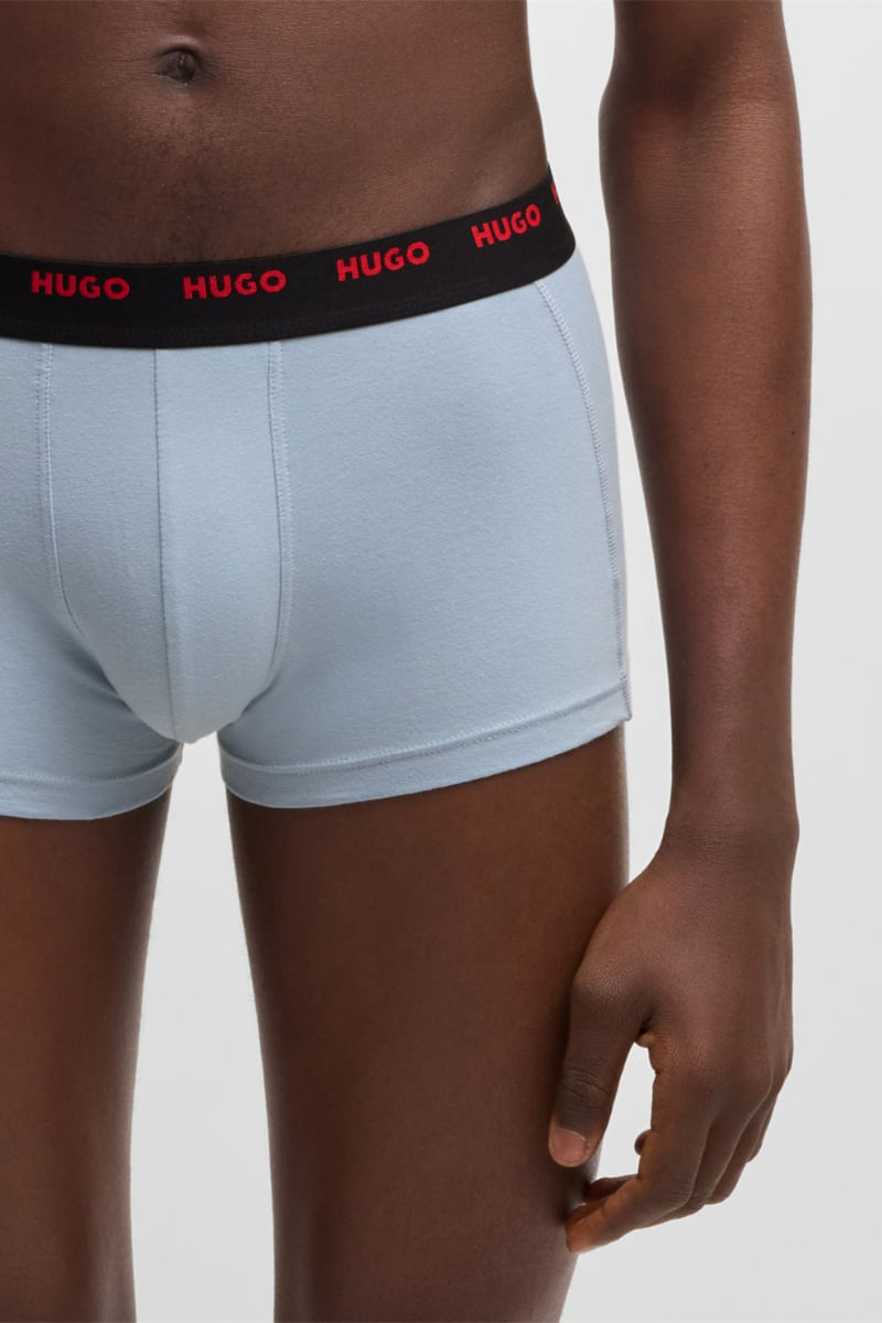 Cinco calzoncillos. Cada diseño se ha elaborado en punto elástico y presenta logos HUGO repetidos en la cintura de tiro medio.