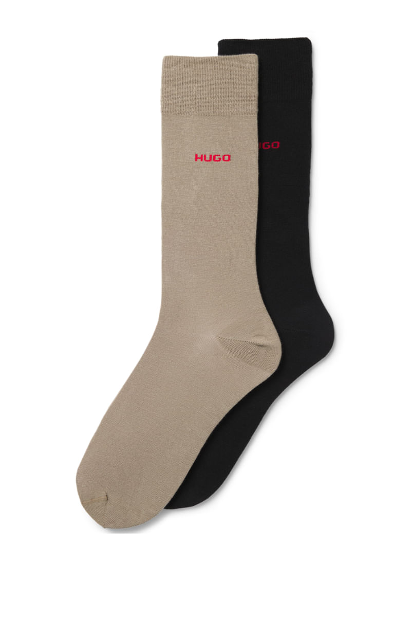 Estos calcetines clásicos de largo normal se han diseñado en hilos con un alto porcentaje de algodón y elástico para conservar la forma durante más tiempo. La marca HUGO añade un toque distintivo cerca del remate.