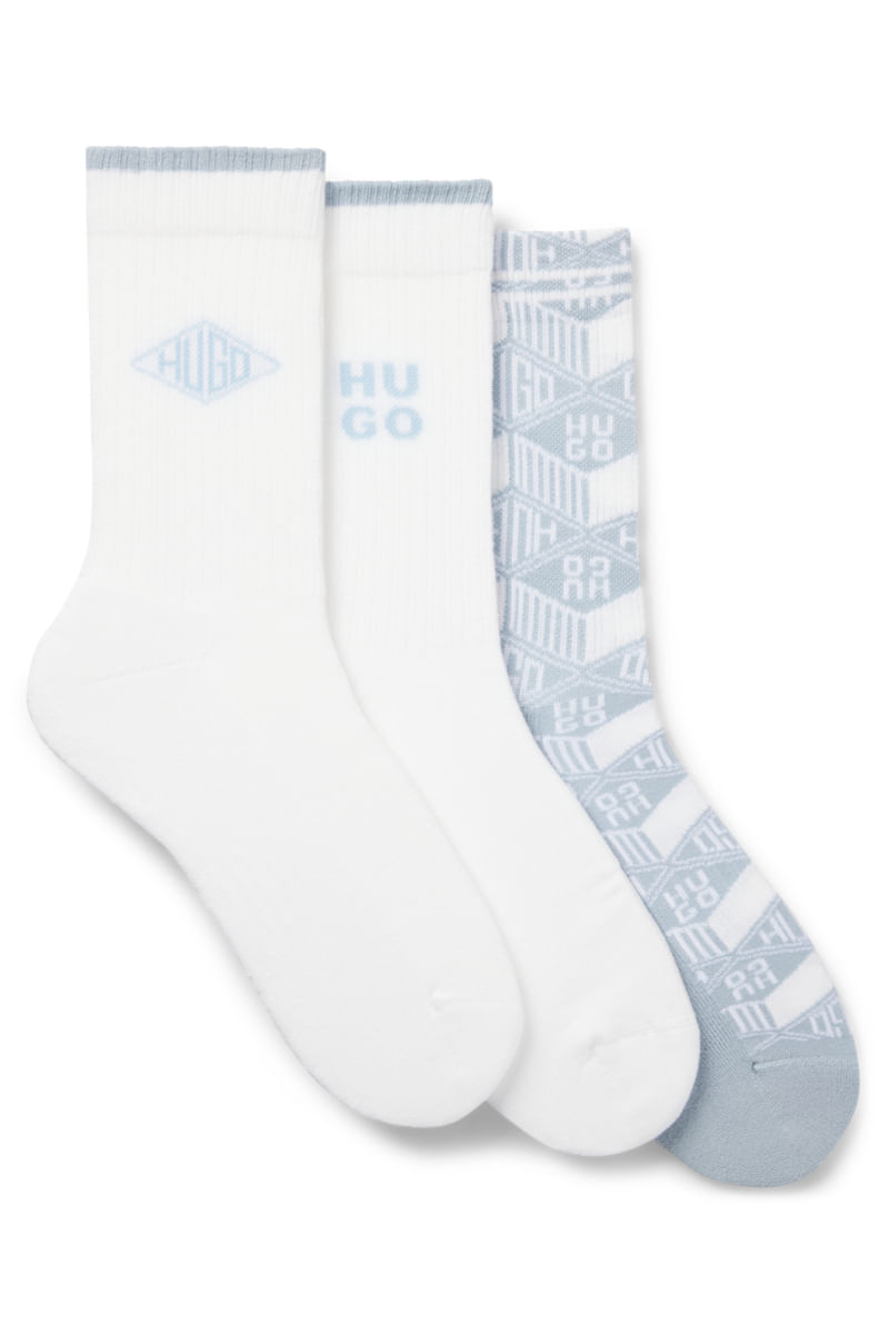 Paquete de tres calcetines cortos en canalé con detalles de logo