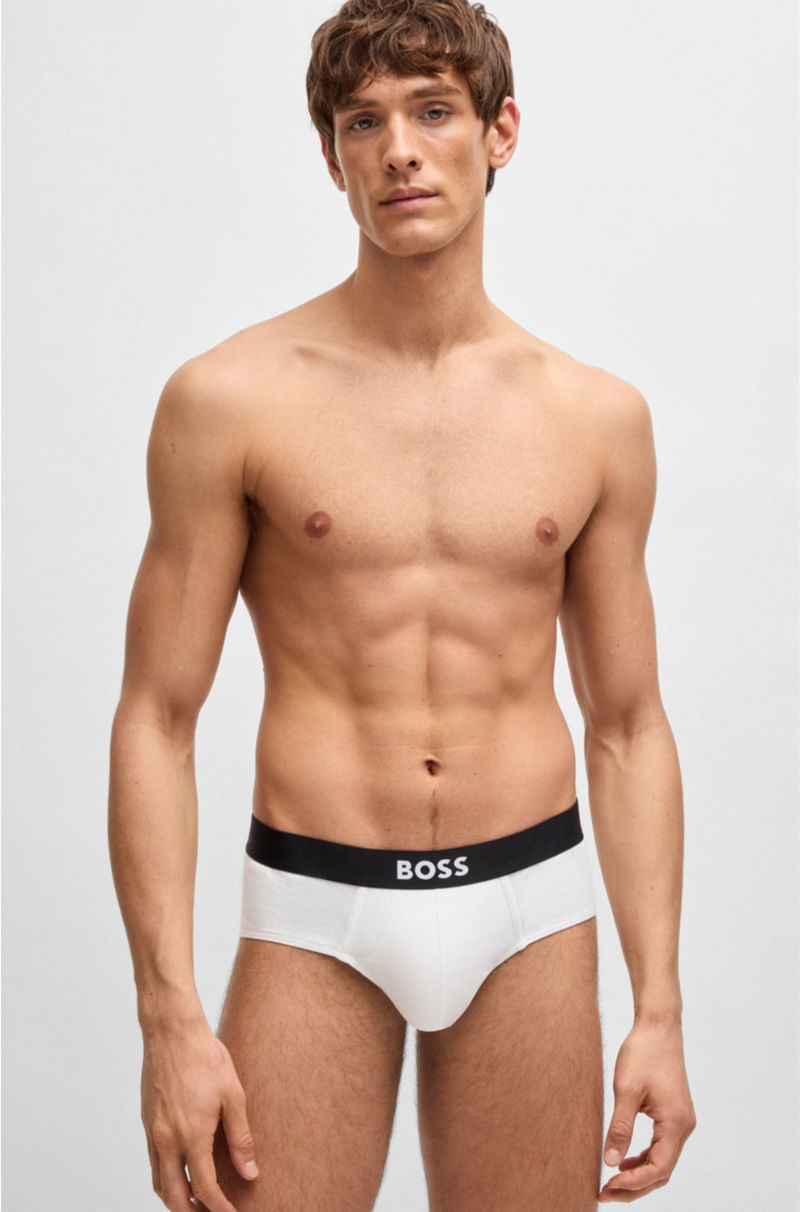 Paquete de tres calzoncillos de algodón elástico con con logotipo en la cintura.