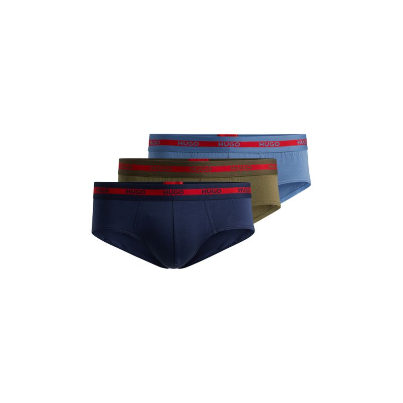 Un trío de calzoncillos HUGO fáciles de llevar con logotipos repetidos en la cinturilla. Este producto está confeccionado parcialmente con algodón orgánico.