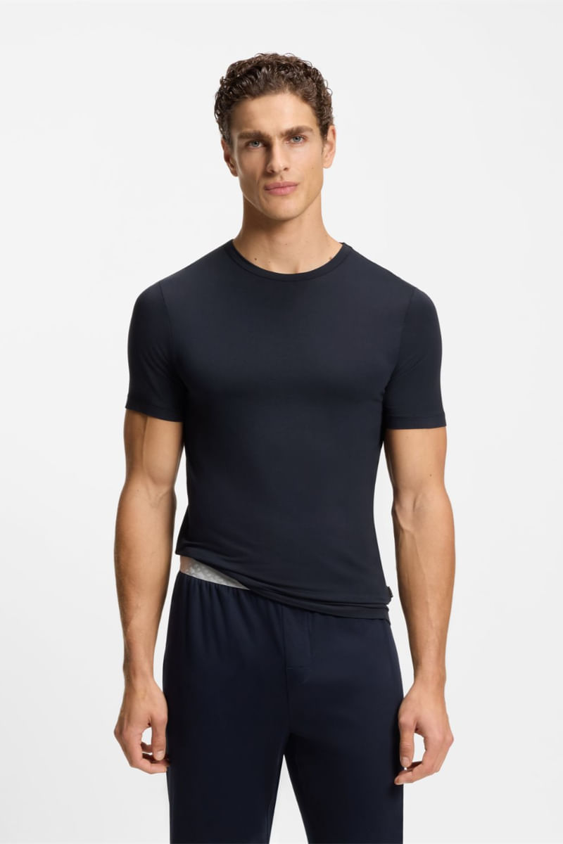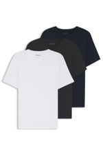 Estas tres camisetas interiores slim fit con propiedades de absorción de la humedad son una base sofisticada para el día a día. Etiqueta discreta con logo. Tipo de Corte:Slim Fit| Composiciòn:95% Viscosa (bambú/celulosa); 5% Elastano