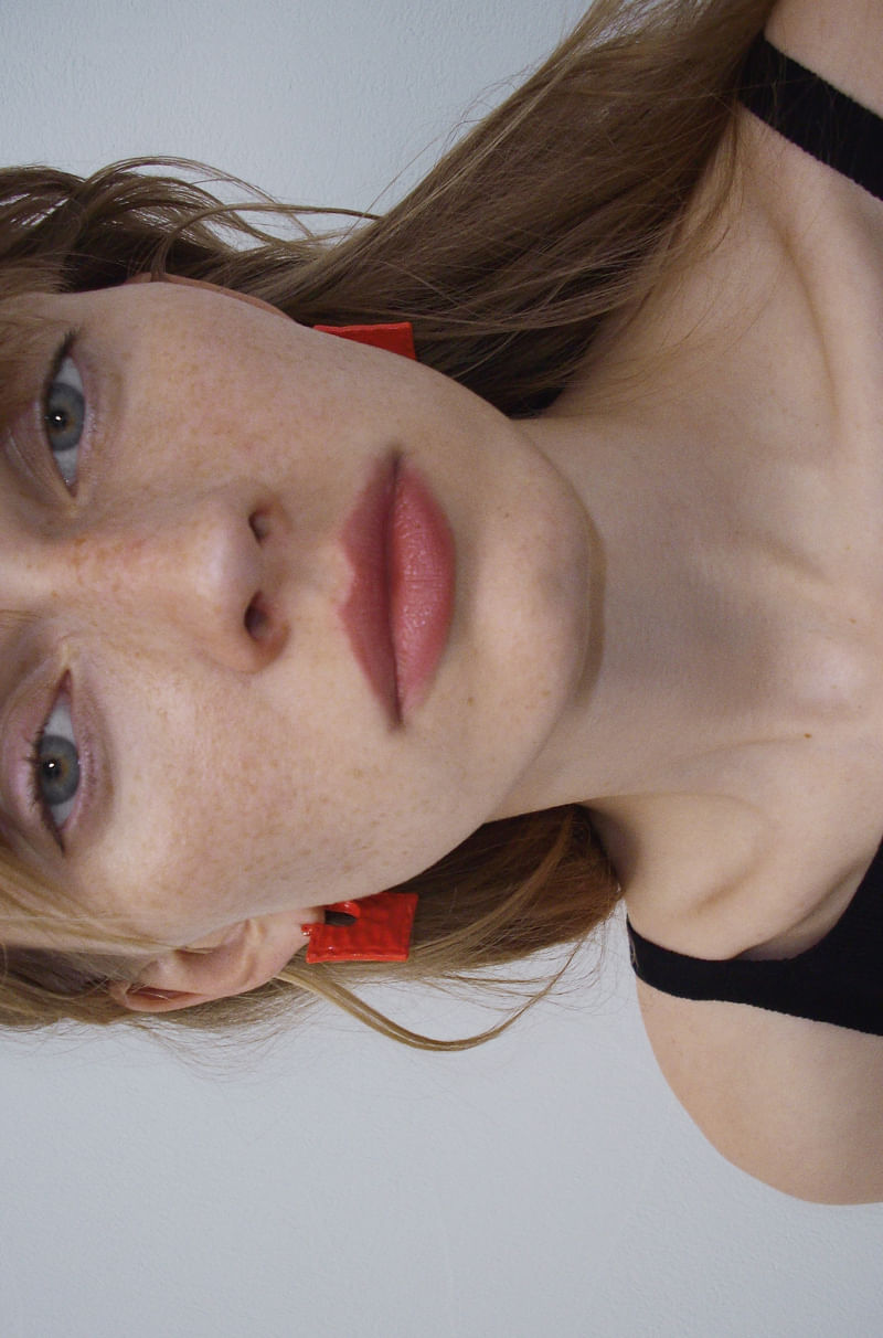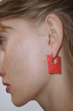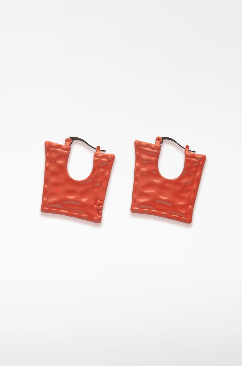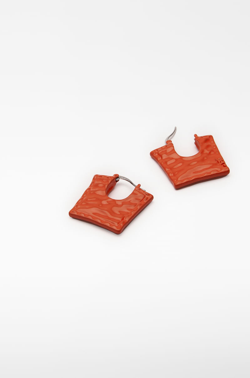 Pendientes metal lacado naranja mujer. Forma inspirada en una colchoneta.