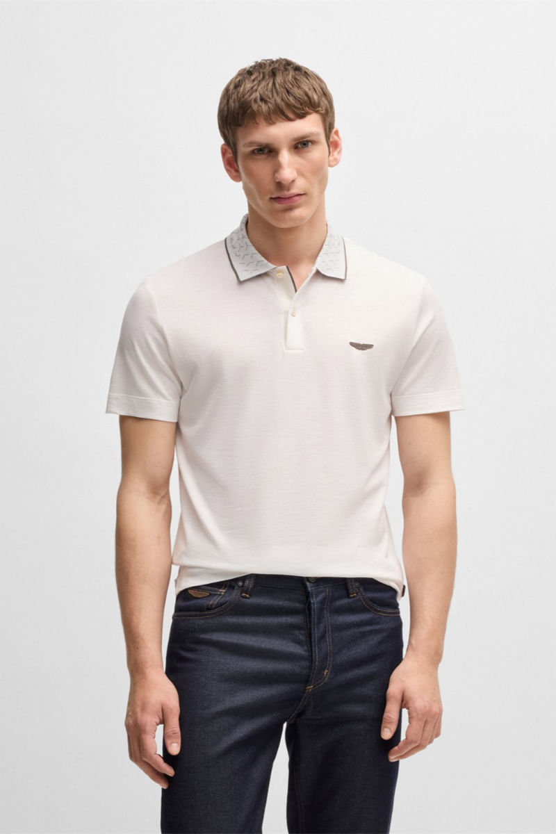 Un polo BOSS x ASTON MARTIN para hombre impecable, con control de la humedad para que se sienta fresco durante todo el día. Elaborado en piqué suave y transpirable de algodón, lino y seda. Elegantes detalles de jacquard y ribetes en contraste en el cuello