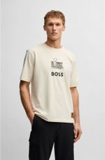 Polo de algodón elástico BOSS x NFL con diseño en tono dorado.