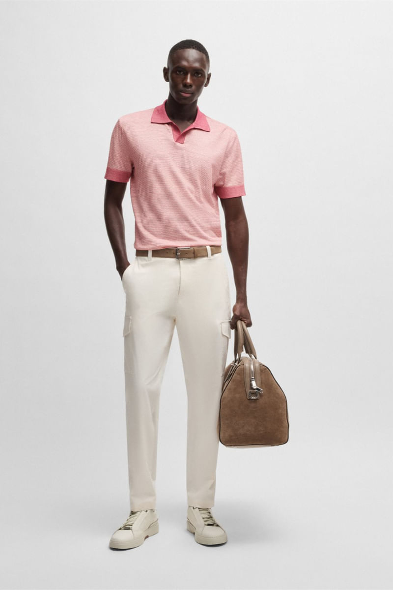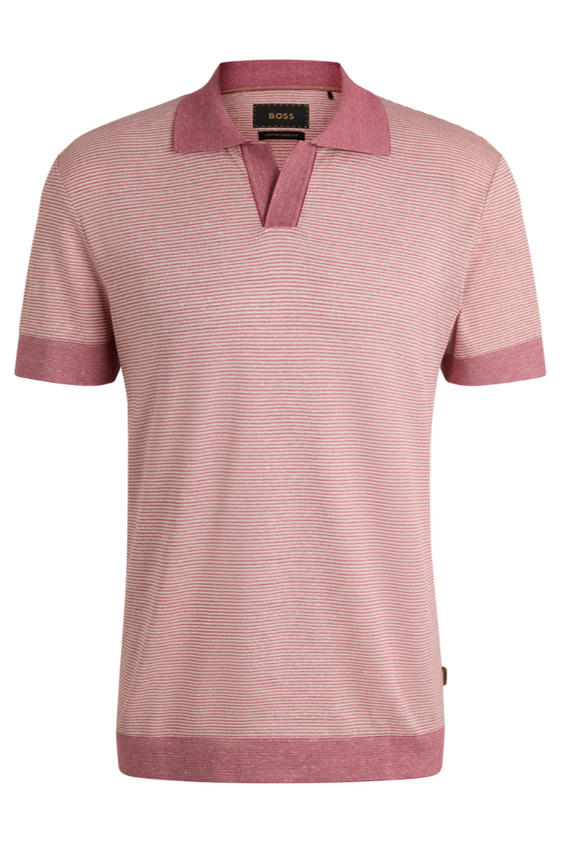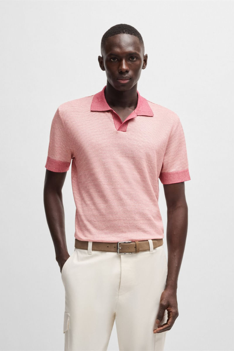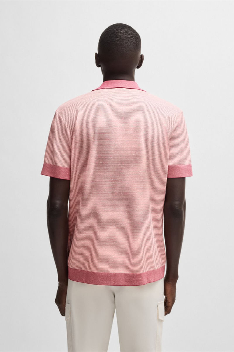 Polo de algodón, lino y seda con cuello abierto