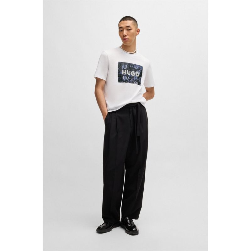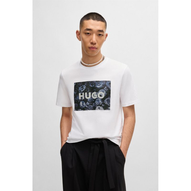 Un polo en jersey de algodón suave por HUGO. Esta prenda tiene un corte regular y está decorada con la marca y las ilustraciones de la temporada.