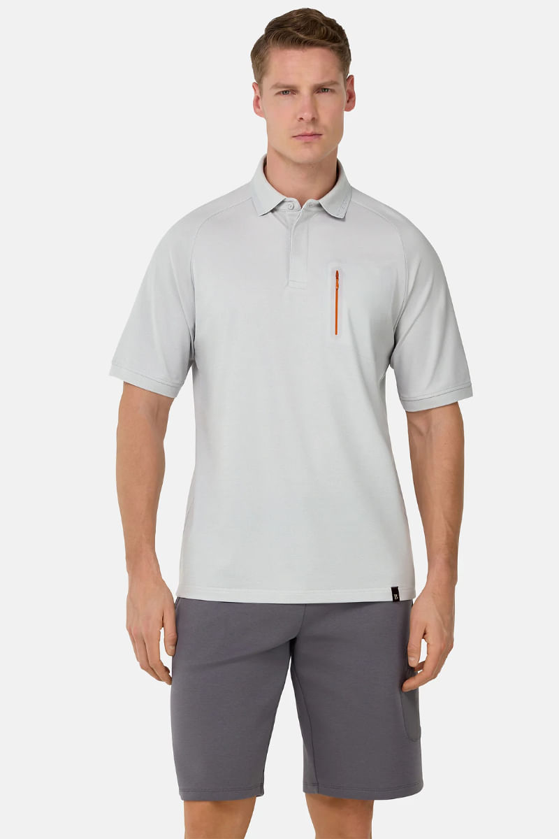 Polo de la colección B-TECH, que se distingue por sus tejidos de vanguardia y sus innovadores procesos de producción. El piqué está tejido con una mezcla de algodón, modal y poliéster con tecnología Cool Jade-Fresh.
