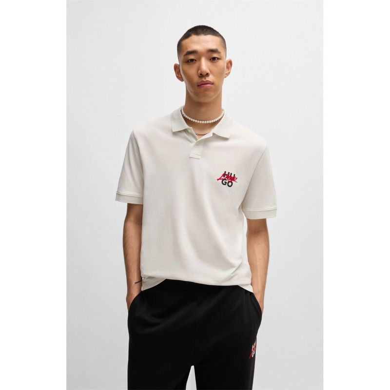 Un polo exclusivo de HUGO en piqué de algodón transpirable. Este top tiene un corte relajado y un estampado de logotipo doble.