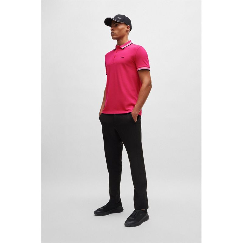 Sube el cuello de este polo de corte regular para revelar detalles del logotipo. Piqué de algodón transpirable. Rayas deportivas y marca en contraste.